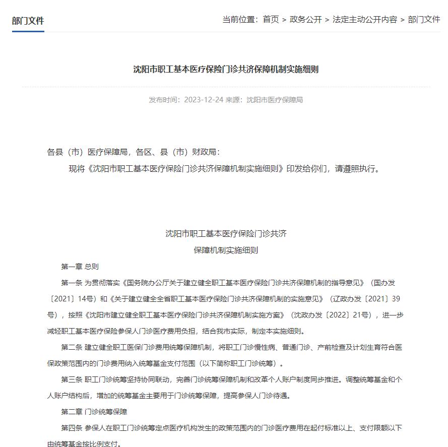 沈陽市職工基本醫(yī)療保險門診共濟保障機制實施細則